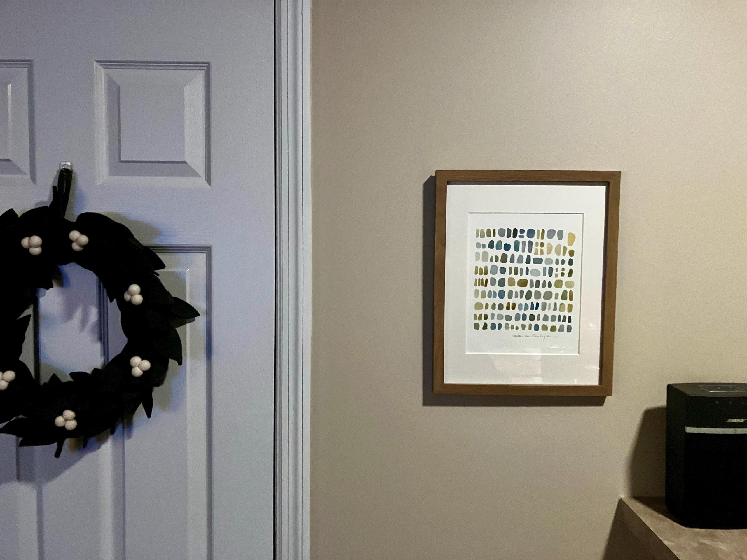 Original little watercolor painting on Fabriano paper.Mossy green and gray pebbles, beach finds. This is an original watercolor painting.